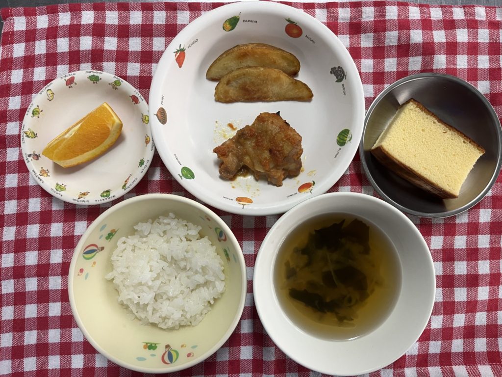 おやつは、おやつカステラ、牛乳です。