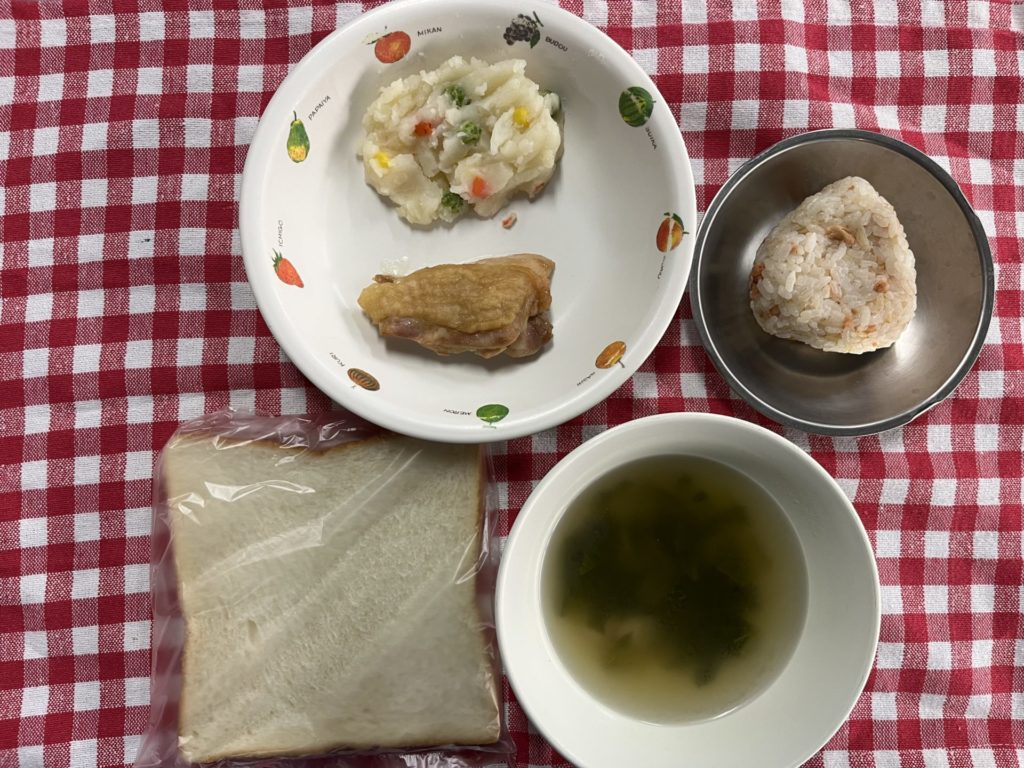 おやつは、さけおにぎり、麦茶です。
