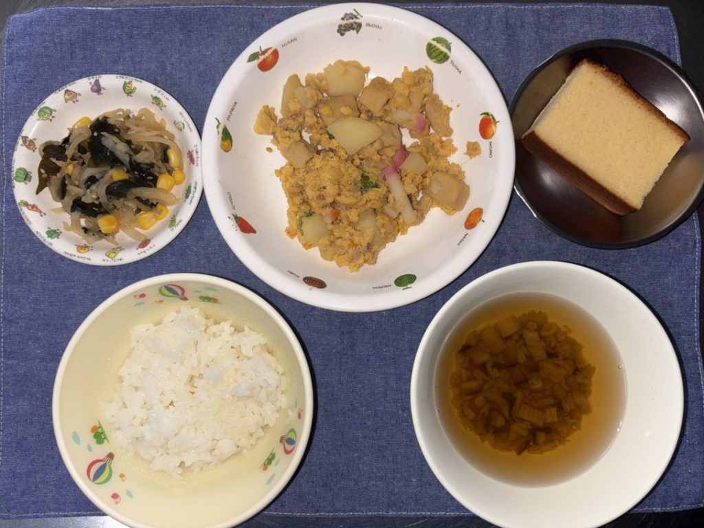 今日のお給食は、チキンナゲット、チャーハン、冬瓜のスープ、パイン缶でした。