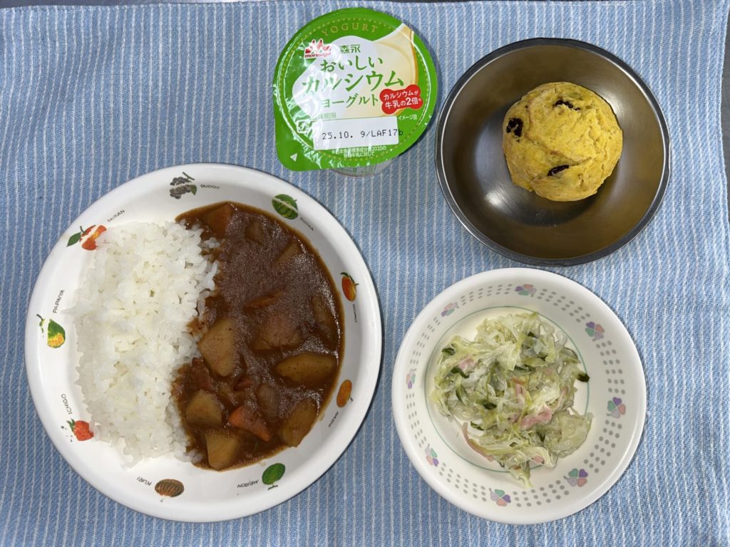 今日のお給食は、ポークハヤシ、コールスローサラダ、ヨーグルトでした。