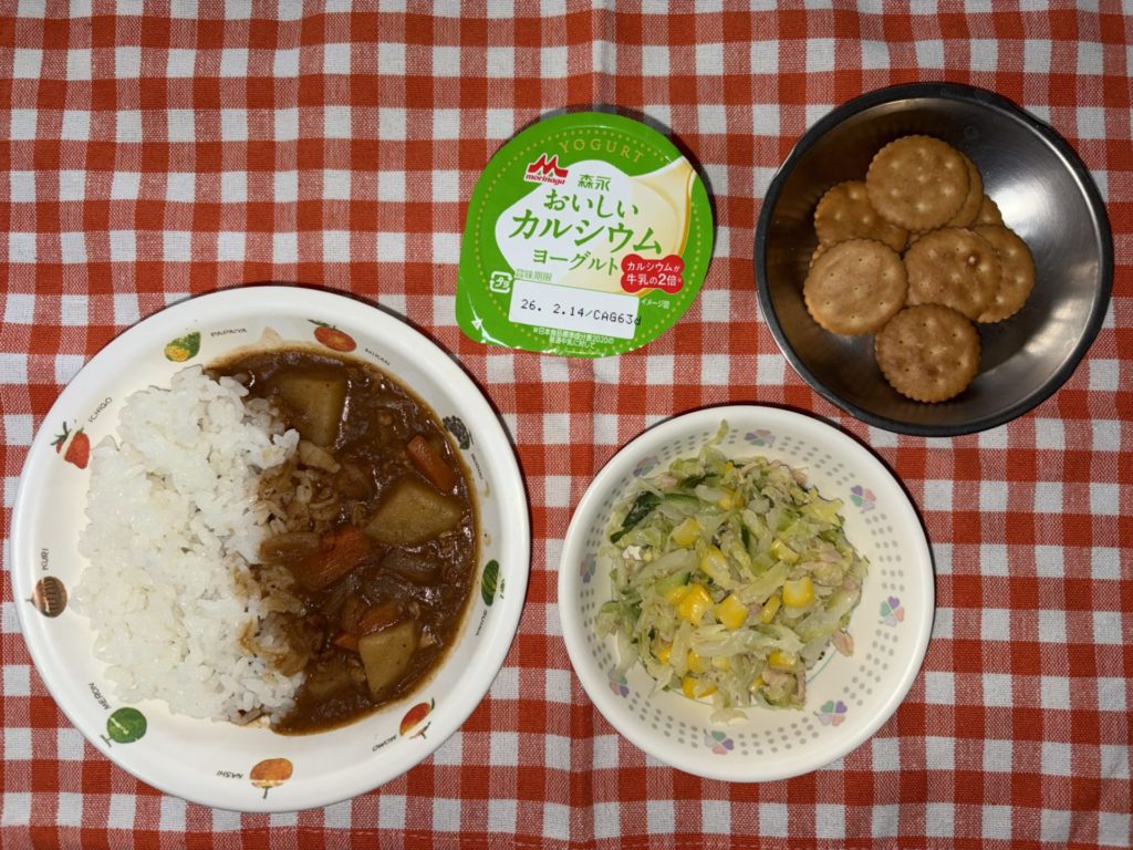 おやつは、チーズカレーラスク、牛乳です。