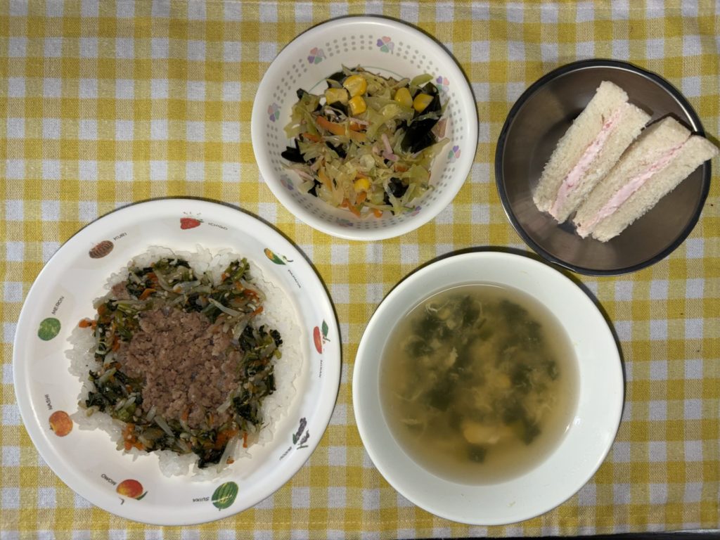 今日のお給食は、ビビンバ風ごはん、チョレギサラダ、はるさめスープでした。