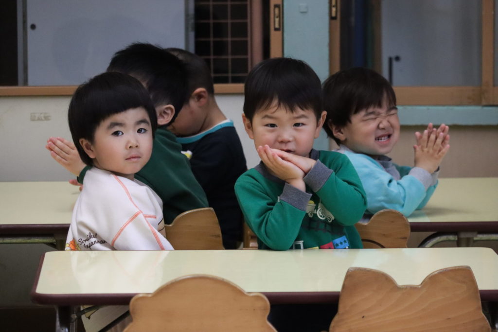 朝のおうたの後に、「子どものお誓い」を手を合わせて、先生たちと一緒に唱えてくれてるところにお邪魔しました!
