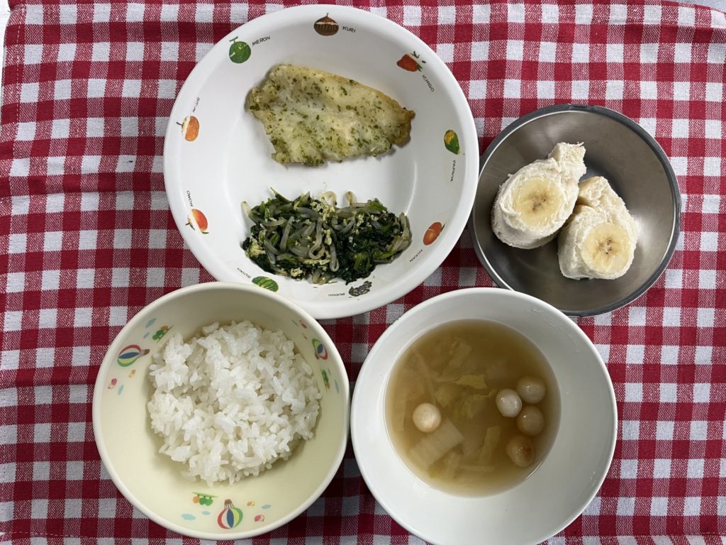 お弁当箱におもちゃを入れたり、スプーンでもぐもぐしたり…。